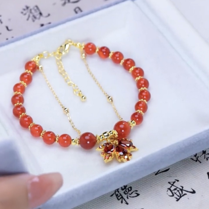 Red agate symbolizes love and hope. Wearing Maple Leaf • Red Agate Bracelet can reduce stress and relieve fatigue.
